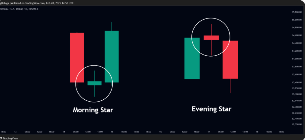 Evening Star: Appears at the top of an uptrend, indicating a potential bearish reversal: