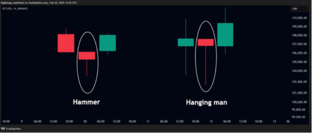 Hanging Man: Appears at the top of an uptrend, signaling a potential bearish reversal.