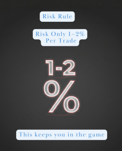 Professional traders stick to 1–2% of total capital per trade as their maximum risk . This isn’t a suggestion,it’s the difference between staying in the game and blowing up your account. Here’s why it works: If you risk 2% per trade, you can survive 50 consecutive losses before your account reaches zero. In reality, even terrible strategies rarely lose 50 times in a row, giving you plenty of room to learn, adapt, and eventually find your edge. If you cannot manage risk with $100, you will not manage it with $10,000, capital size doesn’t fix poor risk management.